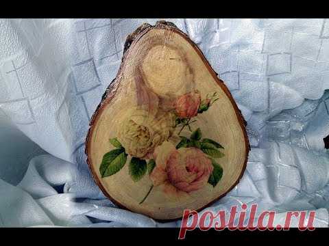 Декупаж деревянного среза. Клеим салфетку на дерево
