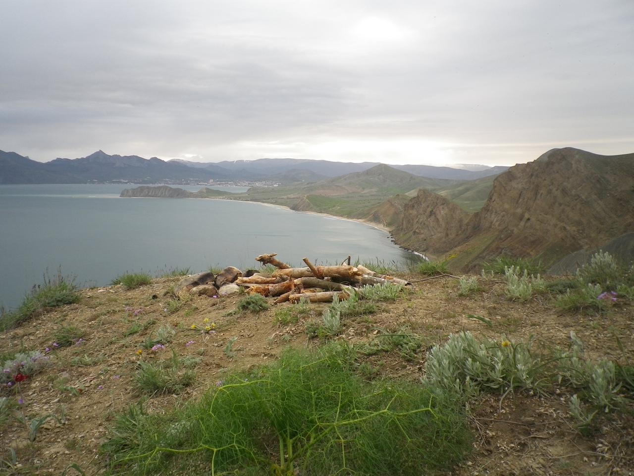 Какие-то романтики издалека принесли сюда на горы эти сосновые поленья, в окрестностях сосен не видно вообще.