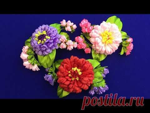 Ribbon flowers.Zinnia&Limonium/Zinnia&Limonium de la cintas/Цинния и лимониум из лент