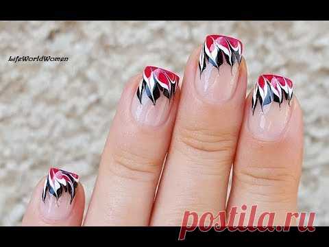 NEEDLE NAIL ART #29 - Red, Black & White Dry Marble Flame Nails - YouTube
