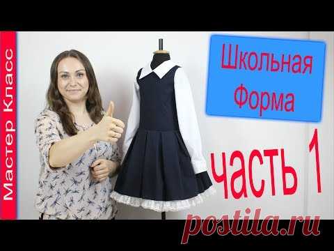 Как Сшить ШКОЛЬНОЕ ПЛАТЬЕ с Воротником, Рукавом и Юбкой с Бантовыми Складками. часть 1