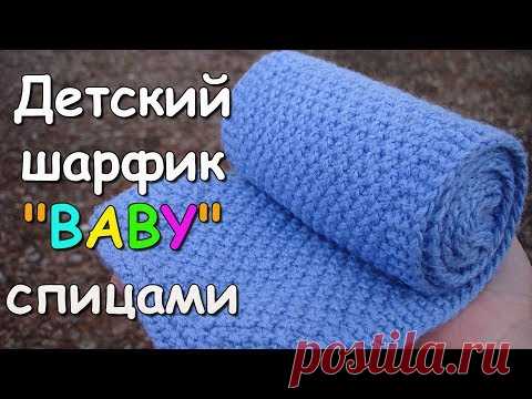 Детский шарфик "BABY" спицами - How to Knit child Scarf