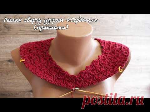 Реглан сверху узором «Сердечки на резинке» - практика (часть 2) - YouTube