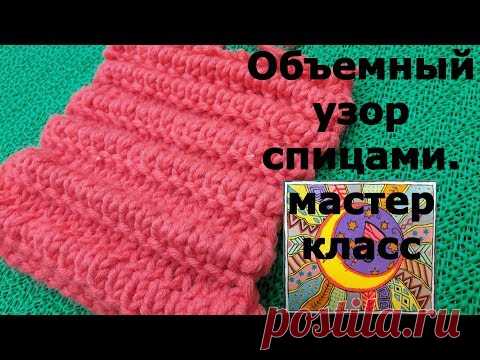Узор спицами 109. Объемная вязка для шапки или свитера. Узор двойными волнами.