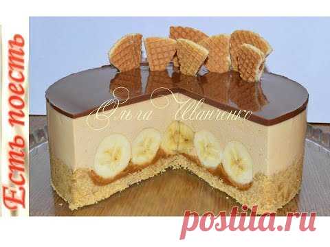 Карамельно-банановый торт без выпечки - YouTube печенье - 250г, масло - 80 г, бананы - 3шт (ориентировочно), Начинка: варёное сгущённое молоко - 1 банка(380 г), сметана - 150г, творог - 300г, желатин - 15г, вода - 80мл, Глазурь: молоко - 100мл, сахар - 2ст.л. (или по вкусу), какао-порошок - 2 ст.л. с горкой, желатин - 5г, вода - 2 ст.л.