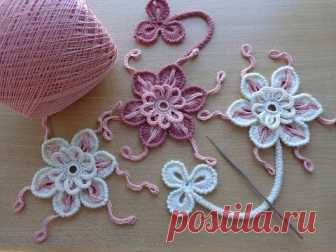 Уроки вязания - Цветок крючком - Ирландское кружево - Flower for Irish lace - How to crochet flower