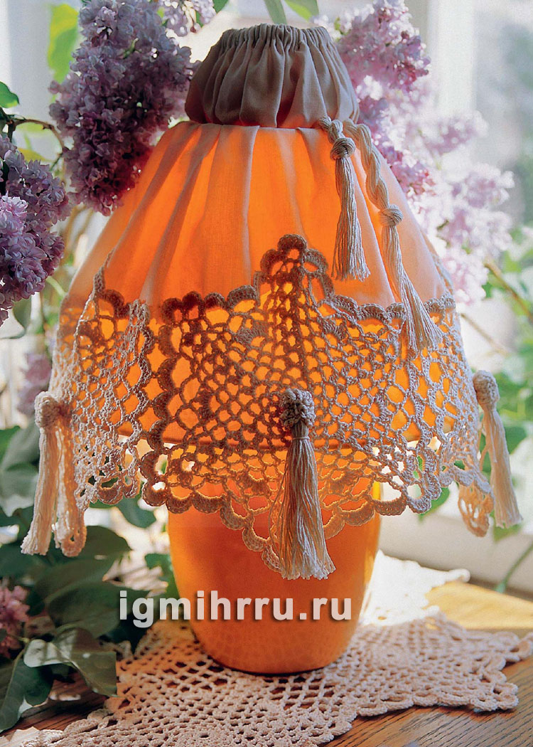 Абажур бежевого цвета на настольную лампу. Вязание крючком со схемами и описанием