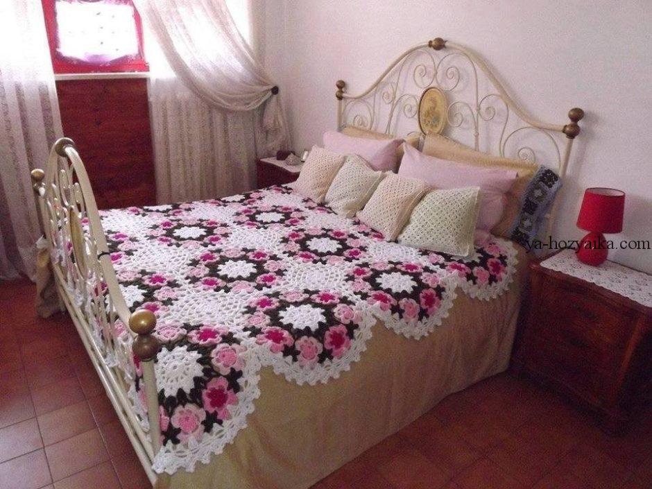 Винтажное покрывало из роз. Красивый плед из цветочных мотивов