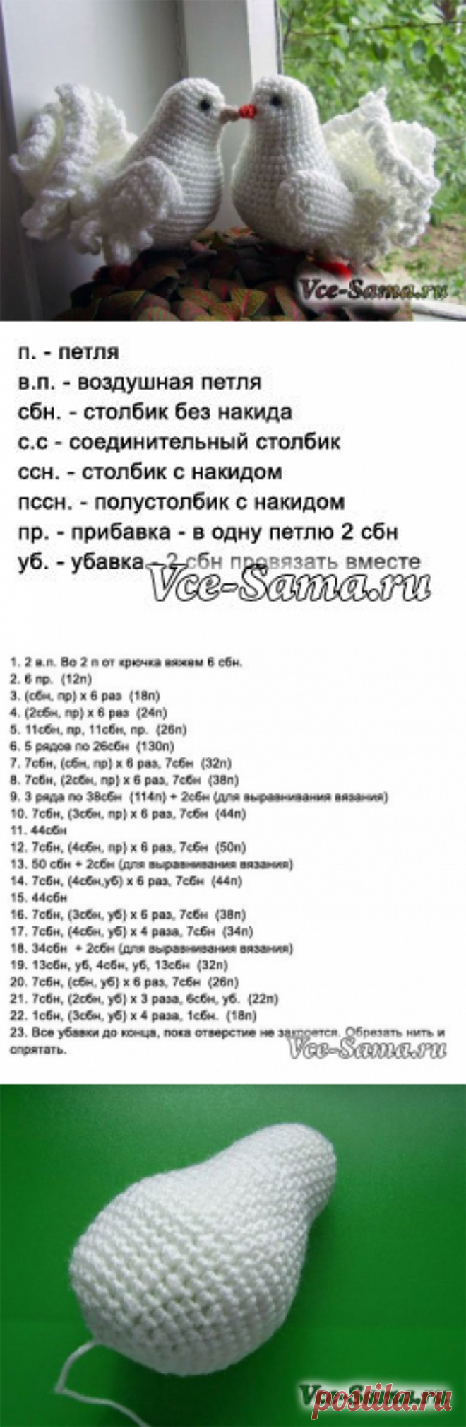 Очаровательный голубь крючком — Сделай сам, идеи для творчества - DIY Ideas