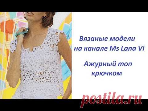Ажурный топ крючком с цветочными мотивами. Вязаный топ крючком. Вязаные модели крючком