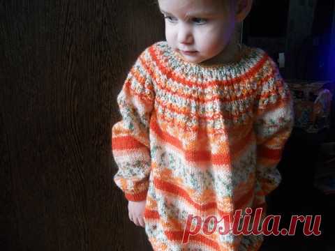 Детский джемпер с кокеткой спицами. Мастер-класс.