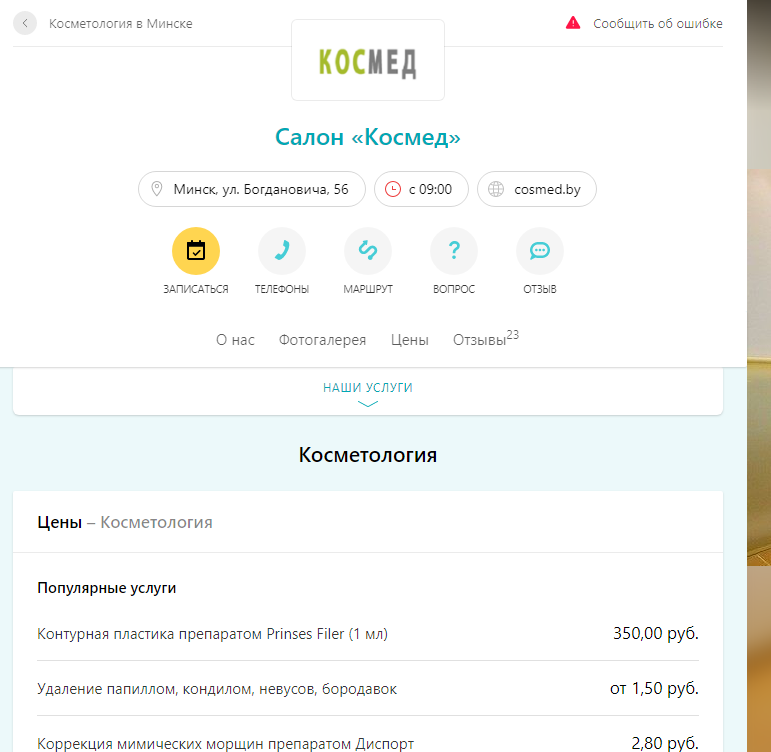 Салон Космед Минск ул. Богдановича 56: отзывы, телефоны, график работы