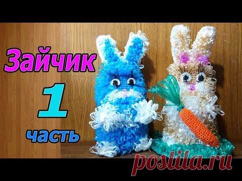Игрушка-мочалка крючком. Зайчик 1\3 часть.