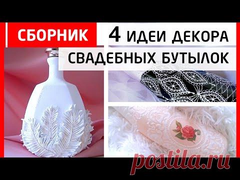 Сборник! 4 оригинальные идеи свадебных бутылок. Роспись и объёмный декор.