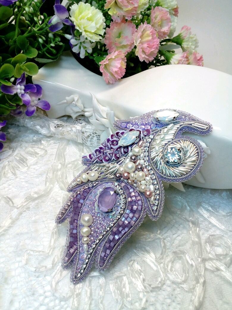 Брошь Лунный цветок из бисера и Сваровски сиреневая – купить в интернет-магазине на Ярмарке Мастеров с доставкой Брошь Лунный цветок из бисера и Сваровски сиреневая - купить или заказать в интернет-магазине на Ярмарке Мастеров | Цветок? Лист? Перо? Тюльпан? Каждый увидит…