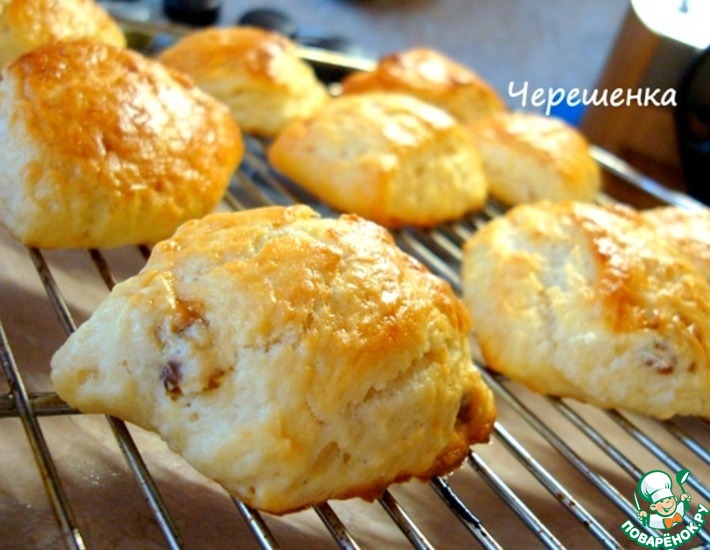 - Получились прекрасные сконы, очень красивые и вкусные. Прекрасное сочетание хрустящей корочки и нежнейшего мякиша!!! Изюм и курага оттеняют вкус и придают тонкую кислинку…