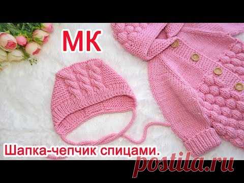 Детская шапка чепчик спицами для новорожденного. Мастер класс