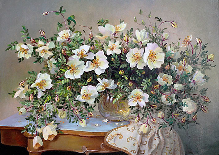 Схема вышивки «Худ. Иванов Владимир. Белый шиповник» - Вышивка крестом