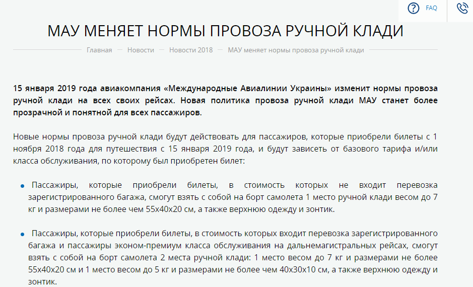 МАУ меняет нормы провоза ручной клади – официальный сайт МАУ (Украина)