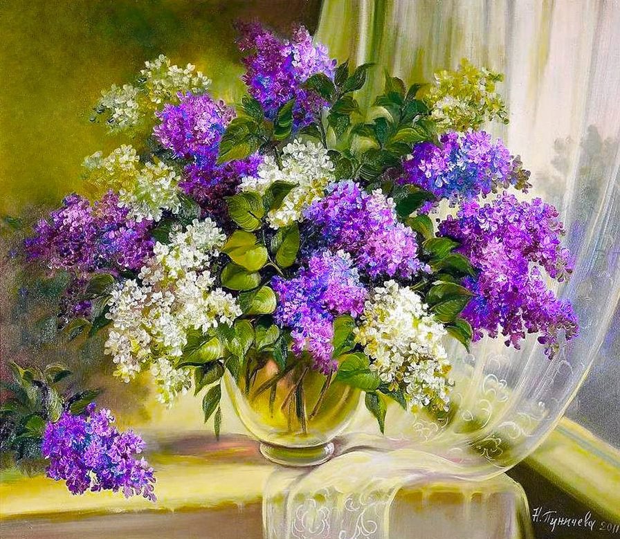 Схема вышивки «Сирень на окне.» - Вышивка крестом
