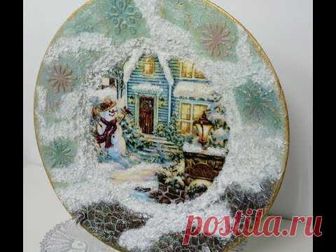 Новогодний декупаж тарелки. Имитация снега. Diy.