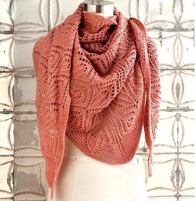 Ажурная рыженькая шаль, связанная спицами из категории Интересные идеи – Вязаные идеи, идеи для вязания