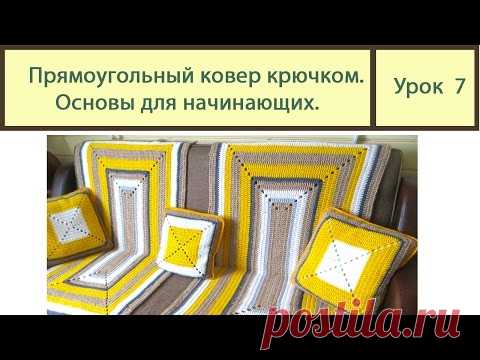 Вязание ковриков крючком. ПРЯМОУГОЛЬНЫЙ коврик основы вязки. Сrochet carpet. Урок 7