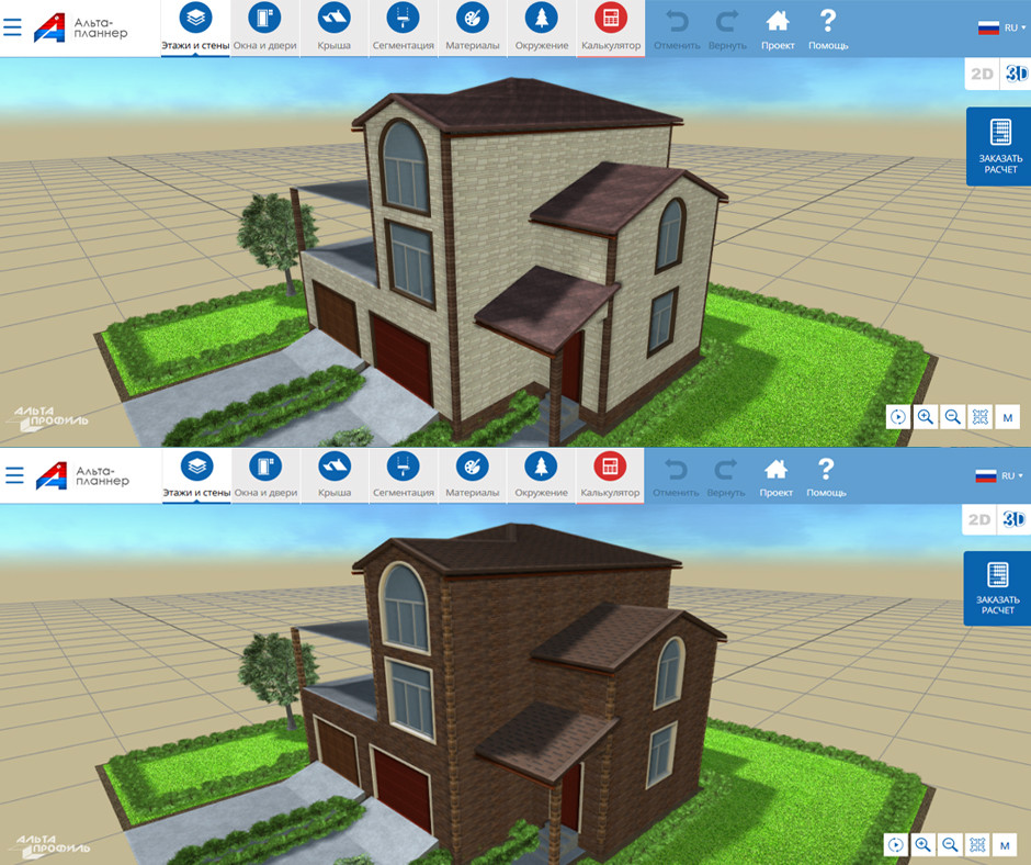 Вы можете подбирать материал для фасада, кровли, водосточную систему и даже представить, как будет выглядеть дом в окружении газона или фруктового сада. ...