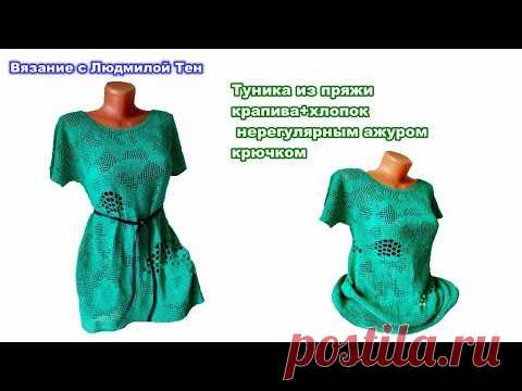 Туника крючком нерегулярным вязанием из бобинной пряжи с крапивой