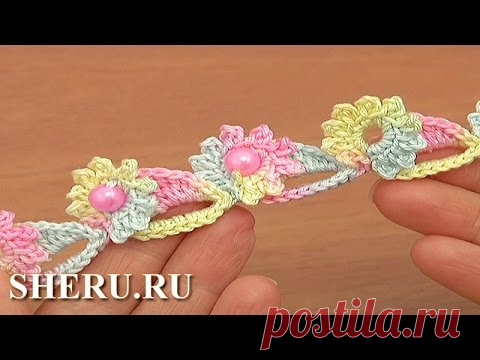 How To Crochet Floral Cord With Beads Урок 72 Цветочные элементы в шнуре - YouTube