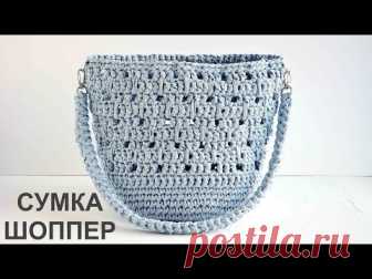 Объемная сумка Шоппер. Вязание крючком. Hobo bag, Bucket bag. Crochet tutorial.