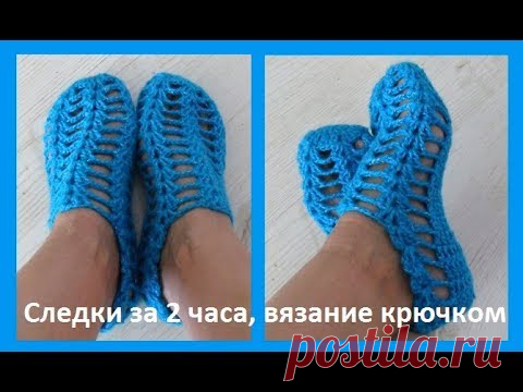 Очень простые ажурные следочки за 2 часа и 50гр ,вязание крючком,zapatillas de ganchillo(С № 27)