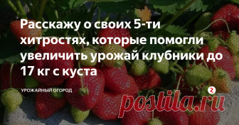 Расскажу о своих 5-ти хитростях, которые помогли увеличить урожай клубники до 17 кг с куста Добрый день, огородники и садоводы! Сегодня поговорим о клубнике. Расскажу, как можно увеличить урожай клубники до 17 кг с куста. Возможно, вам будет интересно. Не забывайте подписываться на Урожайный огород! Ставьте палец вверх, оставляйте комментарии под статьей - как вы выращиваете клубнику? Я всегда говорила и буду говорить, что невозможно получить хороший урожай клубники, если в него не вклад