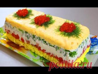 Ингредиенты : вода - 100 мл. желатин - 1 ст. л. майонез - 250 гр. картофель отваренный - 5 шт. яйца отваренные - 5 шт. рыба соленая ( форель, семга, горбуша)...
