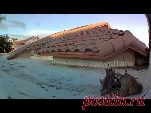 Американец по имени Билл из Аризоны поделился в соцсетях видеозаписью, на которой выводок рысят играет на крыше жилого дома.