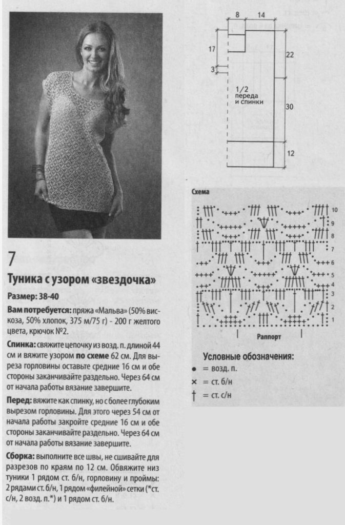 Туника с узором звездочка крючком. Модная туника сетчатым узором | Вязание для всей семьи