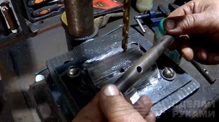 Приспособа для сверления отверстий по центру трубы Иногда возникает необходимость просверлить круглую трубу или кругляк, однако сделать это оказывается весьма проблематично. Впрочем, можно сделать простую