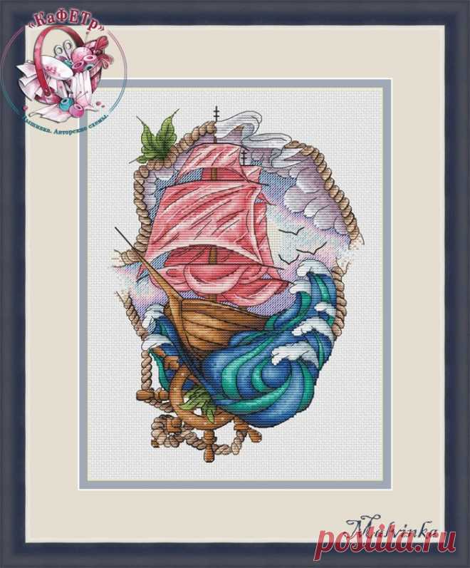 "Корабль" по иллюстрации Галины Хижняковой (https://vk.com/mrsfisher). Инстраграм художницы: https://www.instagram.com/Halalehovnatattoo/ Дизайнер Елена Исрафилова. Размер: 105 х 146 крестиков. Палитра DMC: 46 цветов. Используемые стежки: крест, полукрест, счетный и дробный бэкстич.
