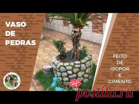 КАК СДЕЛАТЬ БОЛЬШУЮ ВАЗУ, ИМИТИРУЮЩУЮ КАМЕННУЮ СКВАЖИНУ: с пенопластом и цементом