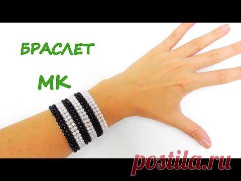 Широкий браслет без застежки из бусин на резинке. МК по плетению браслета