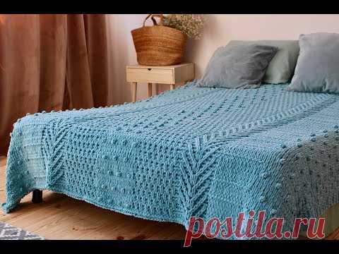 ХИТ! Шикарный плед "ГЛУБИНА" из Alize PUFFY FINE. ЕВРО РАЗМЕР. Вяжем без спиц и крючка