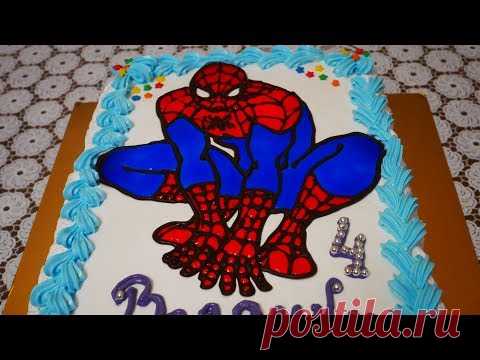 МК по детскому торту ЧЕЛОВЕК ПАУК торт для мальчика Украшение тортов шоколадом гель декором кремом