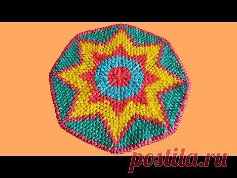 Коврик из пакетов. Коврик крючком из пакетов. Вязание коврика крючком. Часть 1. (crochet rug. P. 1)