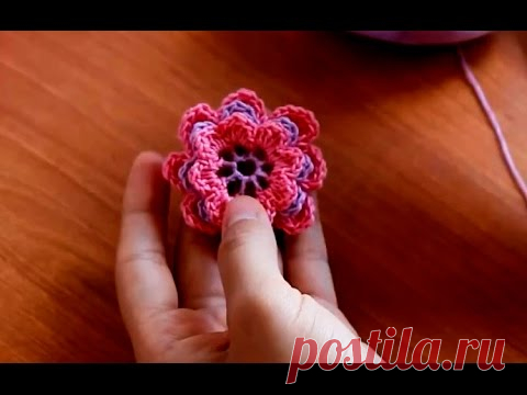 ЦВЕТОК КРЮЧКОМ. Как связать двухцветный цветок крючком