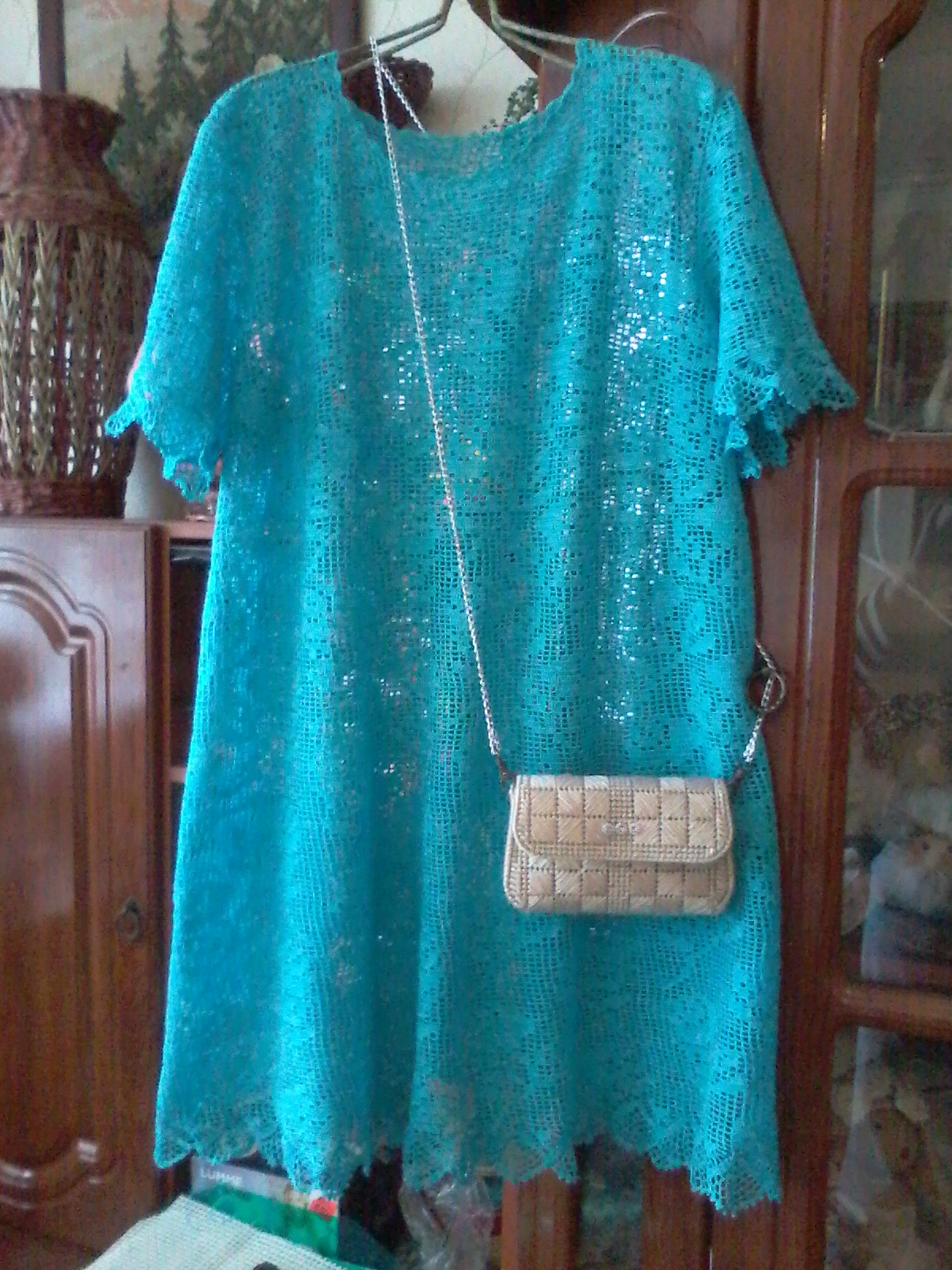 и опять филеечка туника связана в подарок моей подруге к 8 марта,сумочка тоже Ниточки 450 м в 50 гр