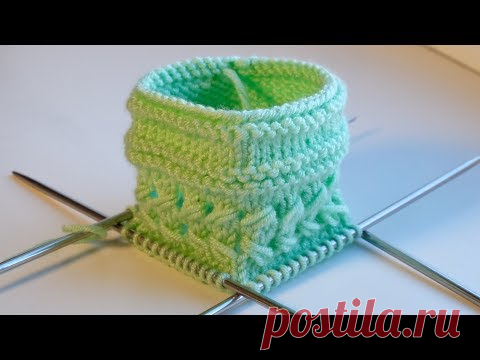 Учимся вязать мережку по кругу. Рапорт узора 3 петли и 6 рядов. Для образца набираем количество петель кратное 3.