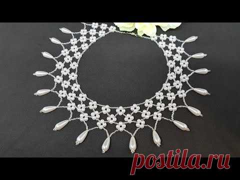 Колье из бусин и бисера "Жемчужная нежность"/Колье своими руками/Жемчужное ожерелье