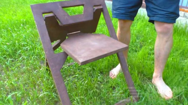 Необычный складной стул из двух кусков фанеры Из двух кусков фанеры толщиной 12 мм можно сделать своими руками необычный складной стул, который не только прочный и устойчивый, но еще и мобильный.Такой