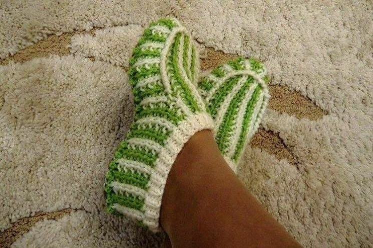 Двухцветные теплые домашние тапочки (Вязание спицами) – Журнал Вдохновение Рукодельницы