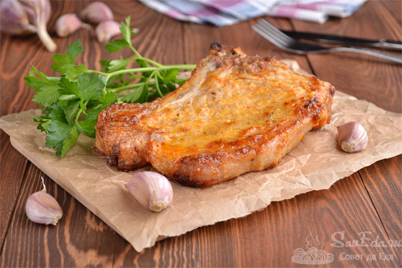 Свиная котлета на кости с майонезом и чесноком в духовке. Готовим сочную свинину на косточке в маринаде из чеснока, майонеза и молотой сладкой паприки. Запекаем свинину в духовке.